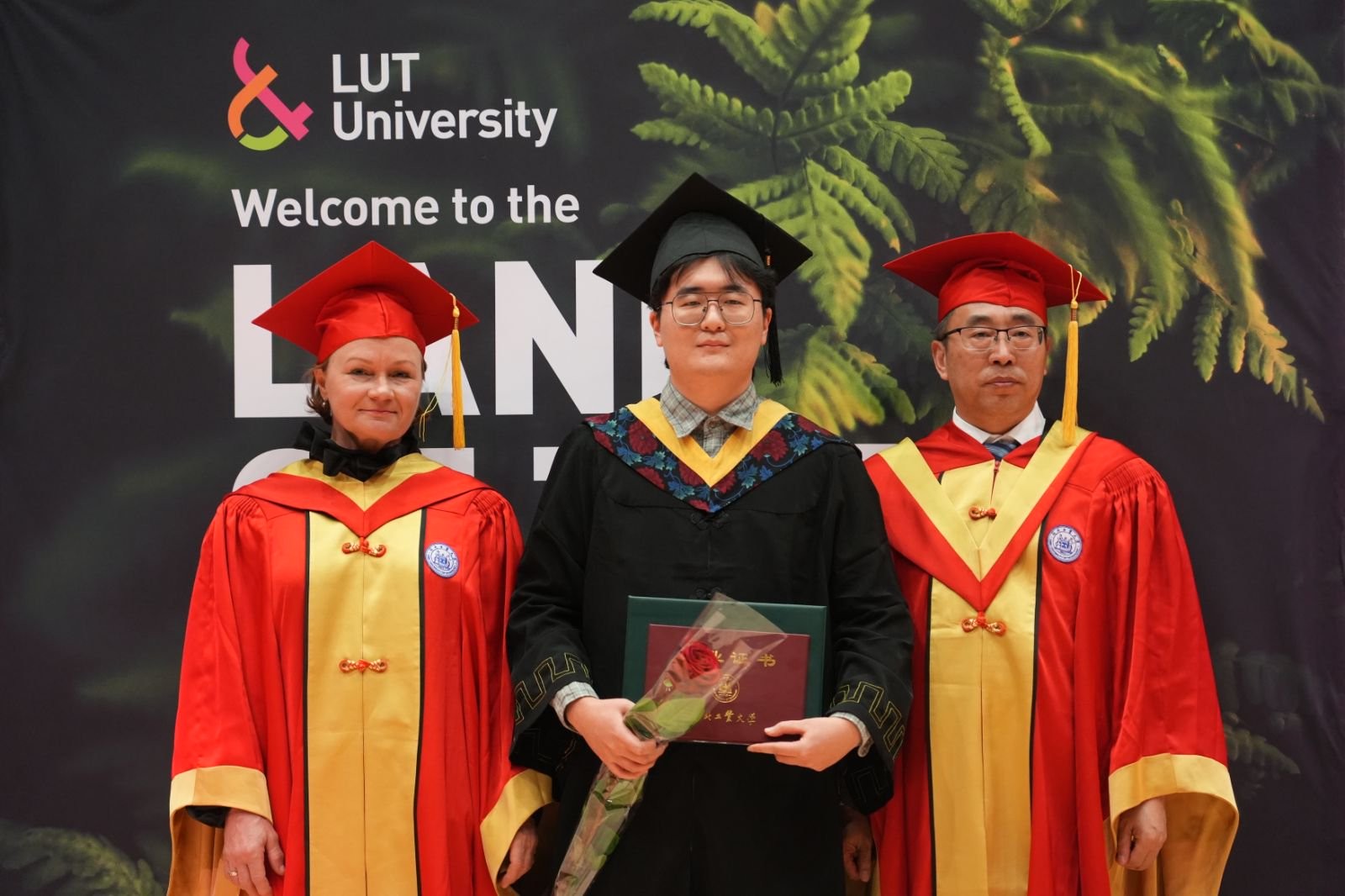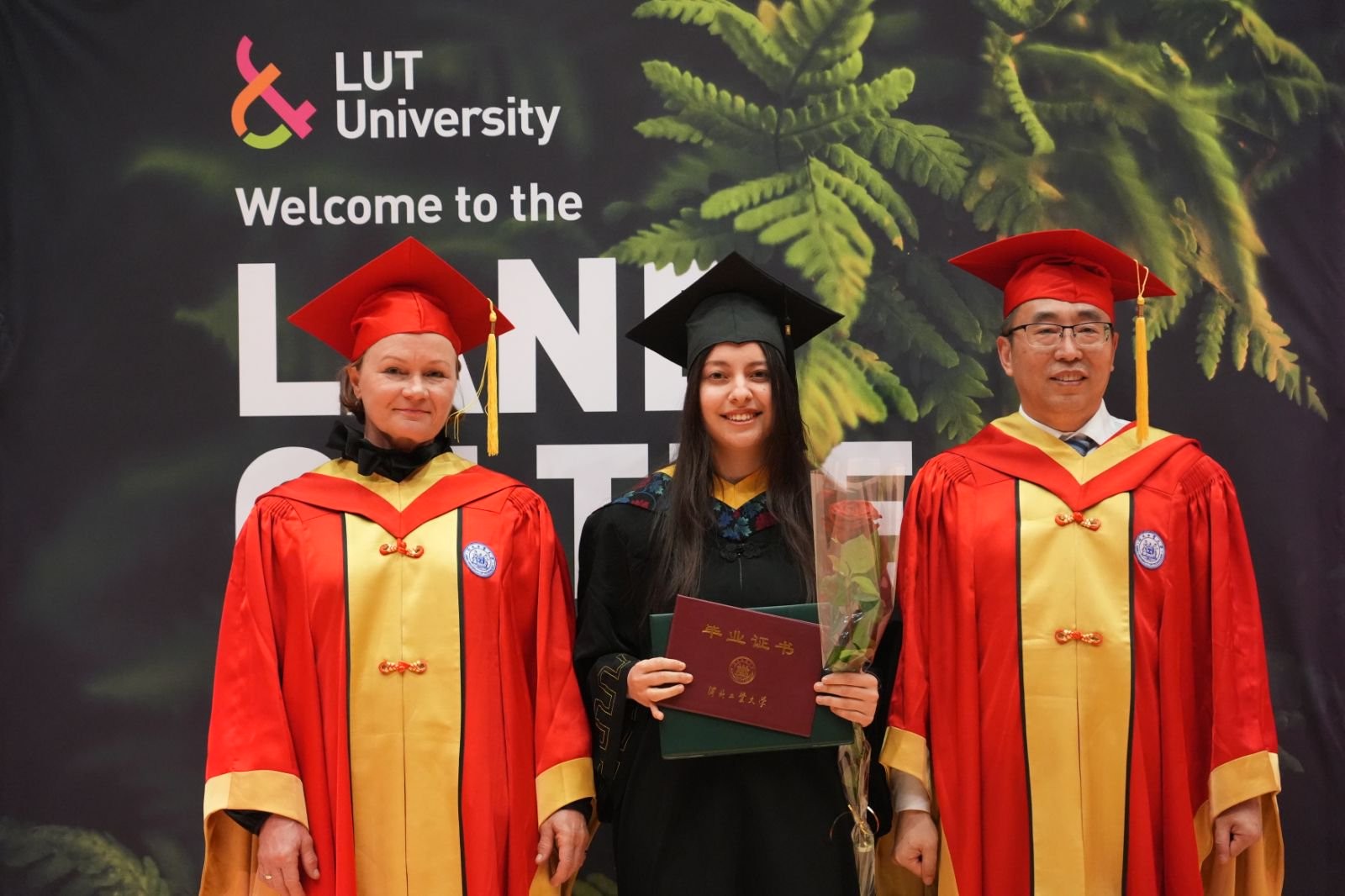 JAANASANDSTR?M发表致辞。她高度评价了芬兰校区的办学成果,认为双方的合作模式在全球高等教育合作中具有重要的示范意义;特别赞扬了两校教职工在合作过程中展现出的开拓创新精神,并对他们为两校所作出的贡献表示衷心感谢。JAANA寄语毕业生,期望他们在未来的生活中始终保持好奇心与独立思考的科学精神,勇于探索、敢于创新,不盲从、不止步,勇敢走出属于自己的道路;能够将所学付诸实践,为推动人类福祉和全球可持续发展贡献智慧与力量;诚挚邀请毕业生加入LUT全球校友网络,继续与母校保持联系,无论身在何方,始终心系LUT,共同迎接更加美好的未来。
