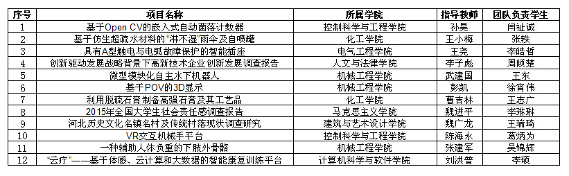 5月19至21日,2017年“挑战杯”河北省大学生课外学术科技作品竞赛终审决赛暨作品展示活动在河北科技大学举行。校党委常委贺立军带队参加,我校19项作品进入终审决赛,最终斩获特等奖12项,并获优秀组织奖,我校参赛作品数量和特等奖数量均位居全省第一。