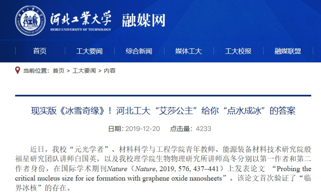 还记得那位河北千亿qy88国际官网入口的“艾莎公主”白国英吗?2019年,她在Nature上给出了“点水成冰”的答案。