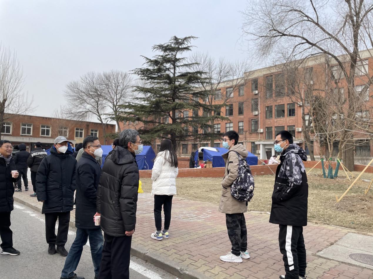 1 月 20 日一早,在我校南院进行第四轮核酸检测采样时,建筑与艺术设计学院的同学们化身“百灵鸟”,站在礼堂台阶上为大家唱歌,他们当中既有学生党员,也有共青团员;动听的歌声响起,“场子”迅速升温,一旁等待核酸检测的同学们好像也“没那么冷了”。