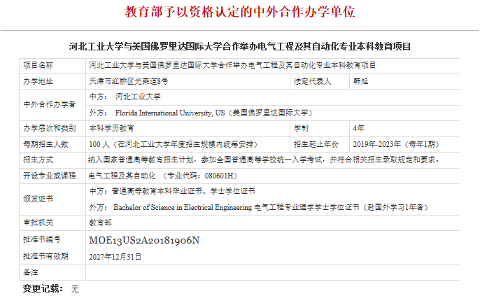 河北千亿qy88国际官网入口与美国佛罗里达国际大学合作举办电气工程及其自动化专业本科教育项目