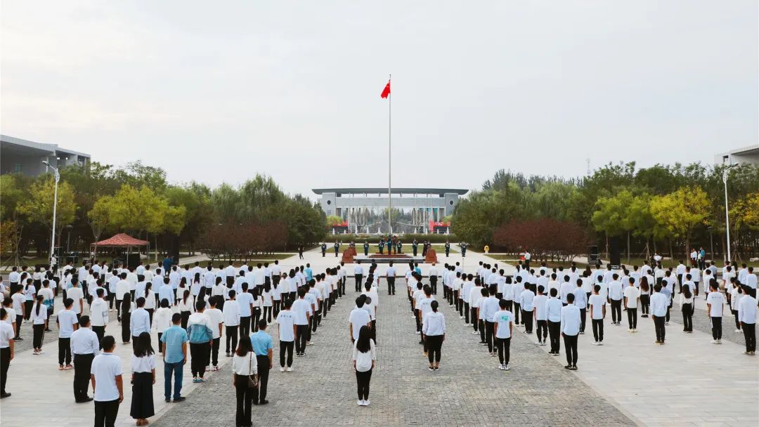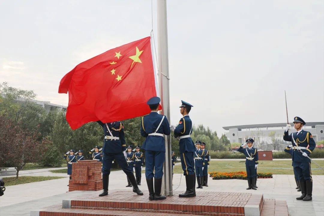 国旗护卫队迈着整齐有力的步伐,庄重地将国旗护送至旗杆下。红旗升起,国歌奏响,河工师生同行注目礼,表达对祖国母亲诚挚的祝福。
