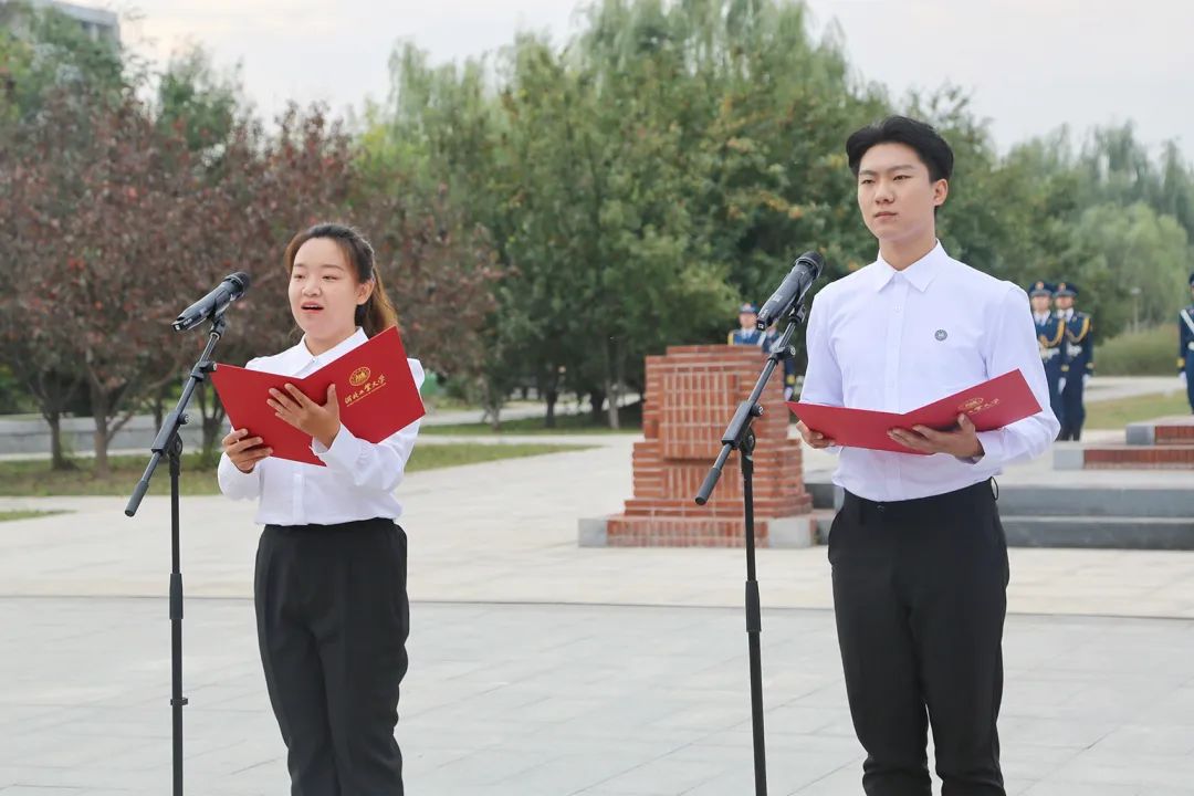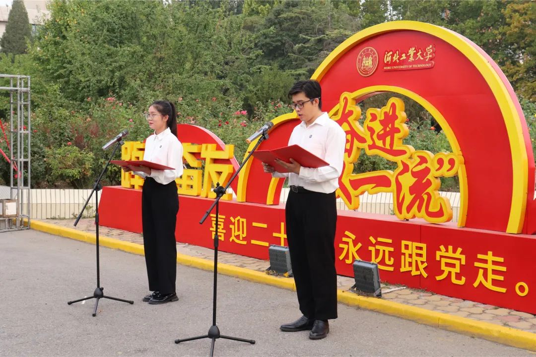 马克思主义学院秦宇航、能源与环境工程学院汤琪、人工智能与数据科学学院陈梦静、外国语学院张莹、生命健康与科学工程学院杨扬在北辰、红桥校区同颂祖国,共同祝福伟大的祖国,用铮铮誓言表达属于河工青年的责任与担当。