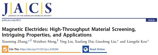张小明教授、刘国栋教授与昆士兰科技大学寇良志教授等,历时近一年完成对磁性拓扑电子化合物的高通量材料筛选,从材料数据库中超过14万种材料出发,结合多种判断手段,共筛选出276种电子化合物,其中51种展现出铁磁、反铁磁与间隙磁性。此外,对所有磁性拓扑电子化合物的电子结构、拓扑物质态、功函数等性质进行了系统研究,并发现它们在电子发射器、促进催化氨合成等领域比惯常材料具有显著的应用优势。该工作是国际上首个对磁性拓扑电子化合物的材料筛选、物性与应用全方面系统性地研究工作,于2023年2月23日在国际顶级期刊Journal of the American Chemistry Society (DOI: 10.1021/jacs.3c00284)上在线发表。该成果第一作者为张小明教授,我校博士研究生孟维真为共同第一作者,刘国栋教授和昆士兰科技大学寇良志教授为论文通讯作者。