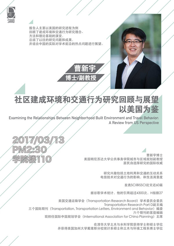 报告题目:社区建成环境和交通行为研究回顾与展望——以美国为鉴