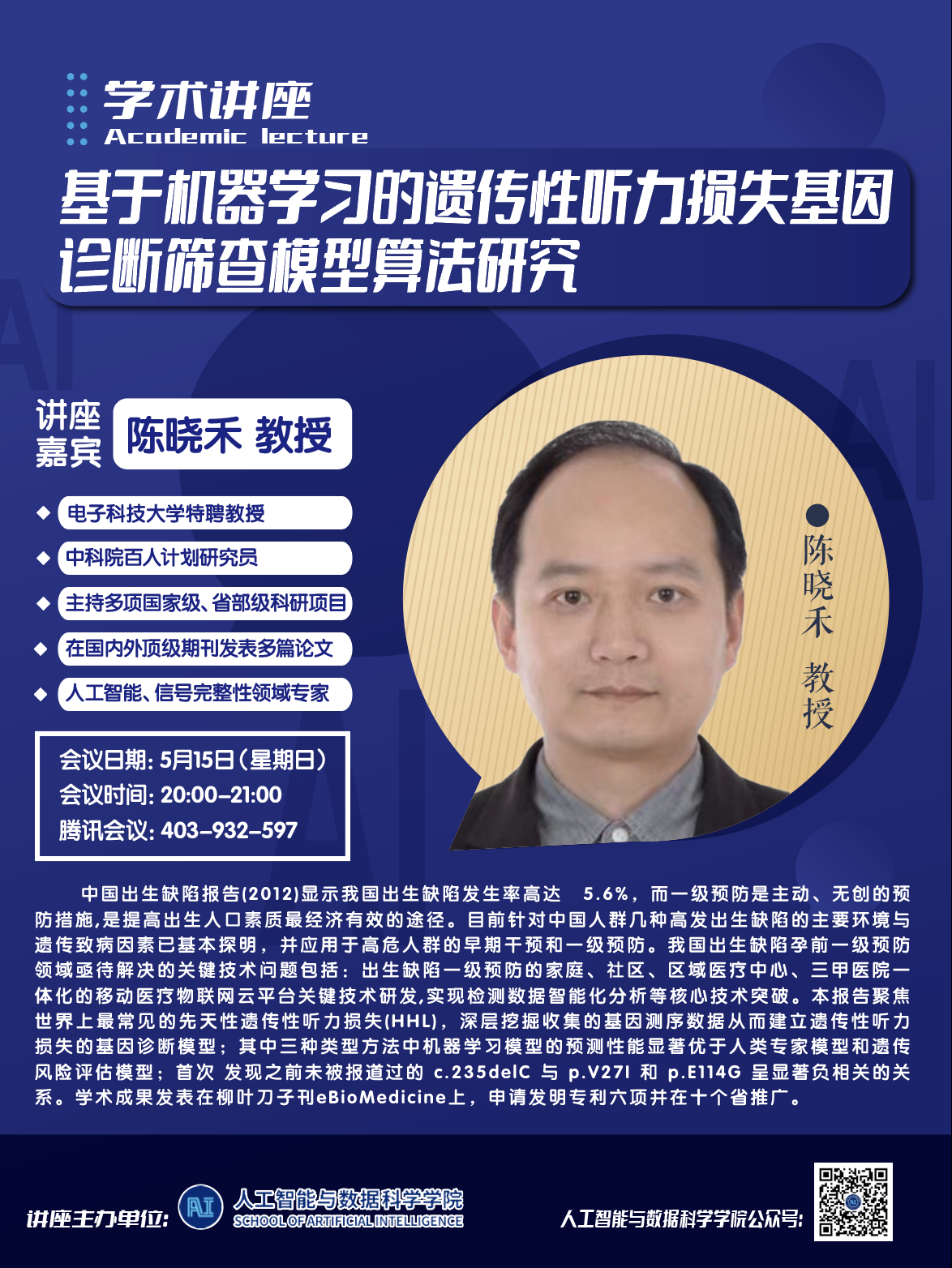 讲座题目:基于机器学习的遗传性听力损失基因诊断筛查模型算法研究